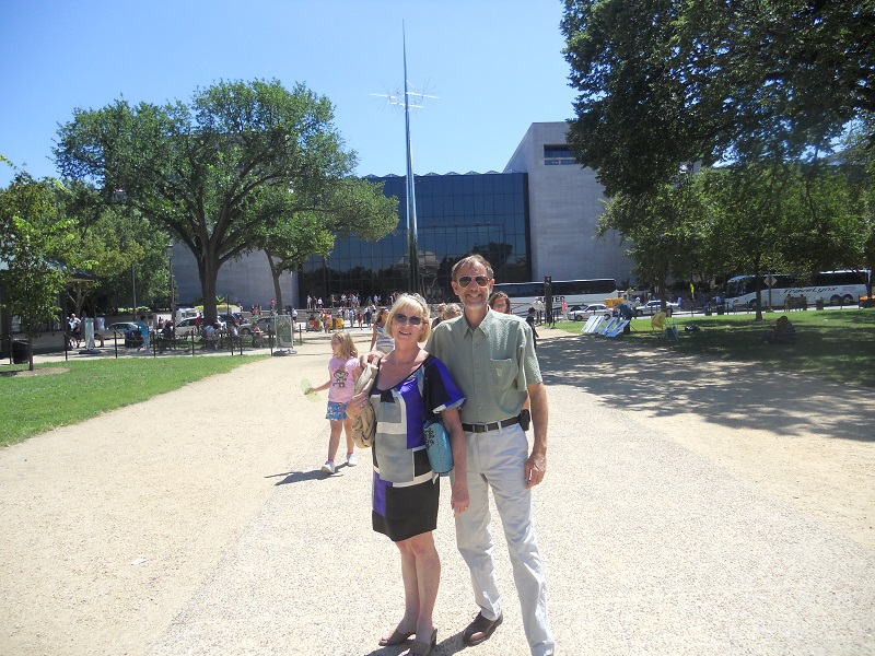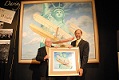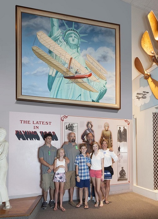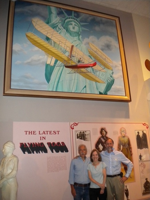 click to view larger image | | The artist s 8 x 10 Wilbur Wright Greets Lady Liberty canvas was placed on permanent display in the Early Flight Gallery of the Smithsonian s National Air and Space Museum on the mall in Washington, DC. The artist was there with his wife Pagan and children Megrez and Cleveland. Present were Senior Curator Doctor Tom Crouch and Chief Curator Doctor Peter Jakabs. |