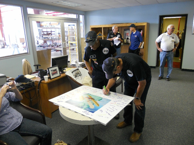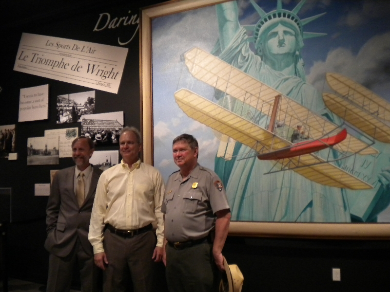 Participating in the unveiling were Dr. Thomas D. Crouch, Senior Curator of the Smithsonian National Air and Space Museum; Amanda Wright Lane, great-grandniece of Wilbur and Orville Wright; and Mary Mathews, retired Executive Director of Carillon Historical Park and Founding President of the Dayton Aviation Heritage Foundation.