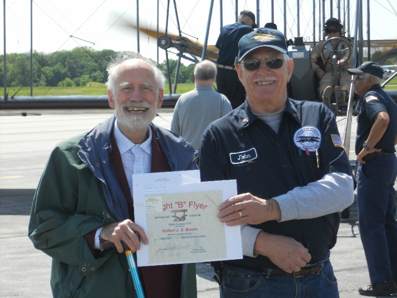 On Saturday, June 2, 2012, Dean and Pagan Mosher were invited to join Amanda Wright Lane and Wright family members Margaret Streeter Edwards Brown, Robert Brown, Cynthia Edwards, and Brett Evans at Wright Brothers Airport, Miamisburg, Ohio, to take turns flying in the Wright B Experience replica of the historic Wright Model B Flyer. Many thanks to those incredible volunteers who work so hard to keep the Wright legacy alive!